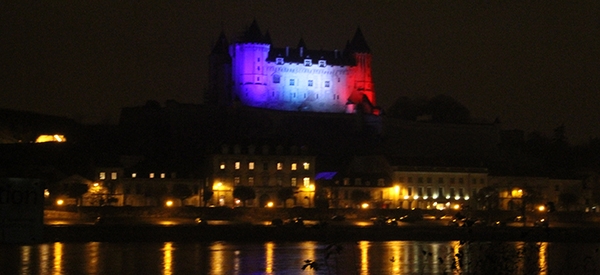 En hommage aux victimes des attentats qui ont frappé la capitale vendredi dernier, la Ville de Saumur a décidé d’illuminer le château de Saumur aux couleurs du drapeau national.
