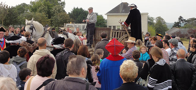 C'est un véritable retour dans le temps que vivront les visiteurs le dimanche au château avec tout d'abord l'arrivée des confréries dans les vignes afin de célébrer l'ouverture du ban des vendanges. Le vieux pressoir tournera toute la matinée dans la cour de la caserne Feuquières pour produire le premier jus, livré sans attendre au public. De nombreuses animations ponctueront la journée. Des spectacles équestres seront présentés par la compagnie Cappale, qui a participé aux spectacles de jour et au spectacle des « Écuyers du temps ». Pour sa part, la compagnie Plantagenêt montrera la vie quotidienne au Moyen Age en plein cœur des vignes. En plus de ses basses œuvres, le bourreau lancera des enchères assez particulières. L’École de chevalerie permettra aux petits et grands de découvrir la vie au Moyen Age.