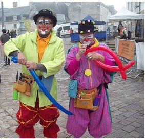 Dans leurs costumes originaux et colorés, les clowns Recto-Verso, originaires d'Angers, transformeront en quelques instants des ballons multicolores en fleurs, chiens, cœurs, girafes... sous le regard admiratif des enfants qui pourront repartir avec un souvenir inoubliable.